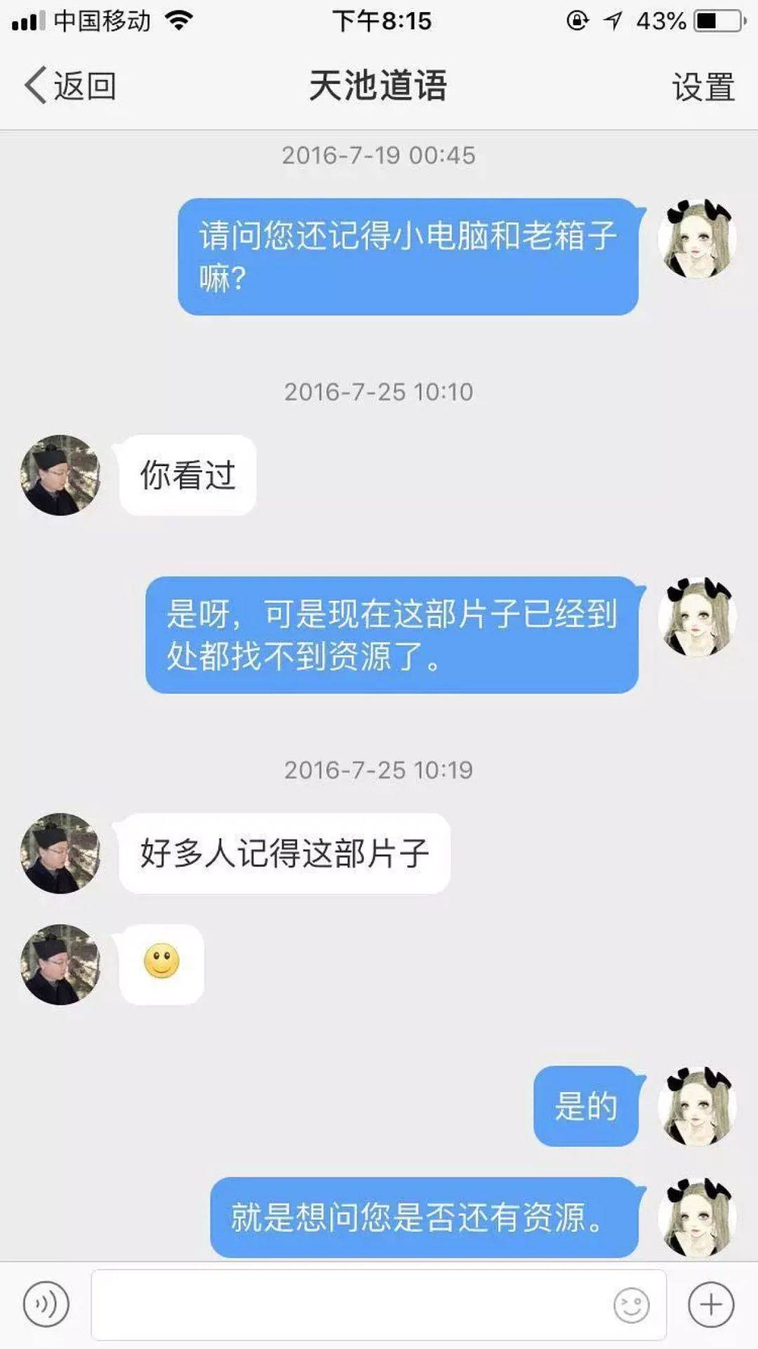 对于作为主创是否还保有片源的疑问,崔雪峰不置可否,而是发表了一篇感慨寄语,委托吧友转述给还在寻觅《玩具之家》的人们。今年初,id为“三丰派玄阳子”的用户在贴吧发布了名为“《玩具之家》作者向诸位朋友问好”的帖子,内容与此前的微博回复除日期以外完全相同,疑为崔雪峰本人发布。